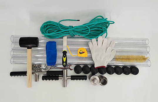 淺水區域:將擊打手柄、延長桿、采樣器連接起來。確定好采樣地點后,把采樣管垂直插入水中,感覺到采樣器不在下沉深水(水深大于5m)區域:將尾翼配重底端與采樣器鏈接,再將繩子與尾翼配重頂端相扣,緩慢投放至水里,直至下沉水底后,在往回拉尾翼配重。